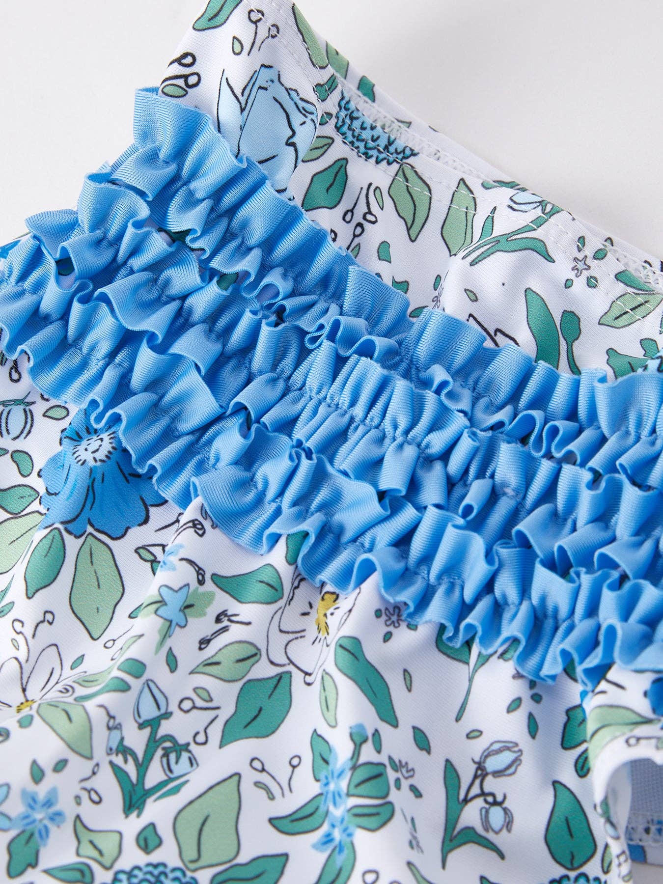 Dive into summer in style with our Blue Floral Girls Swimsuit! Featuring a beautiful floral design, this swimsuit is sure to turn heads. Its vibrant colors and comfortable fit make it the perfect choice for a day at the beach or pool. Let your little one make a splash and feel confident in this must-have swimsuit.