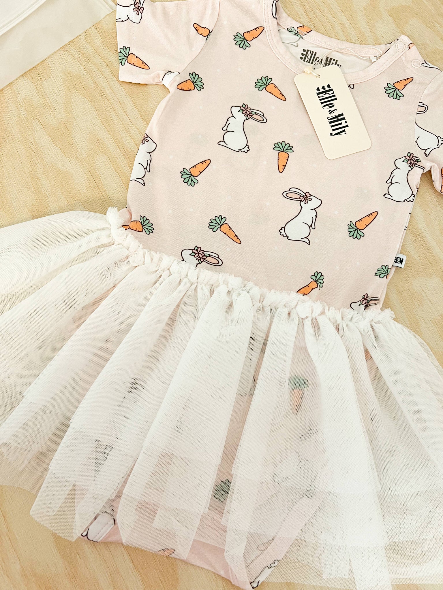 Introducing the Lily Tutu Skirty baby dress, made with luxuriously soft bamboo and spandex for ultimate comfort. Perfect for your little one's Easter celebration (or just everyday cuteness). Get ready to "ooh" and "aah" over this adorable and practical piece!