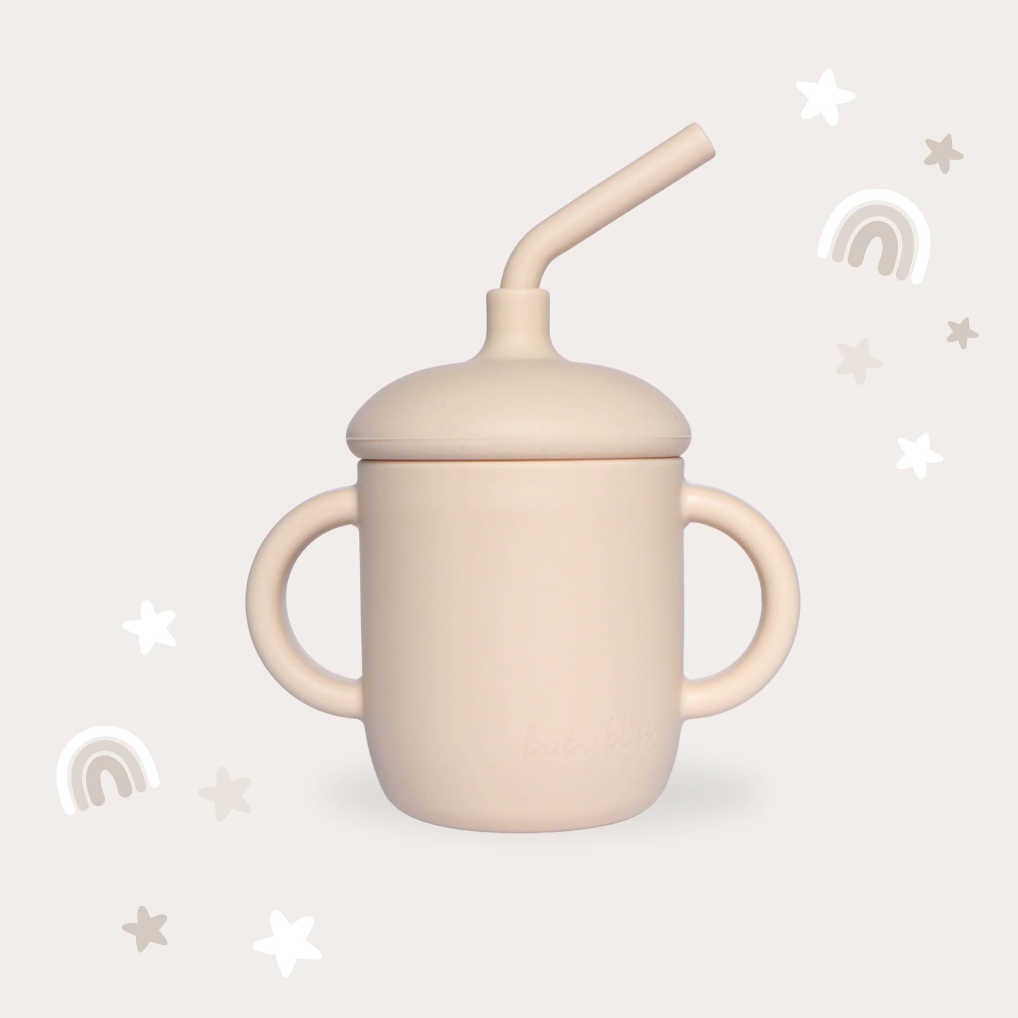 This silicone spill proof sippy cup is made with a curved straw and double handles. Excellent for helping babies transition from bottle to a sippy cup with straw. Spill proof for all adventures; it offers peace of mind during tumbles or falls. Designed with an easy twist-on lid and features soft, ergonomic handles with enhanced grip to prevent slips and spills.