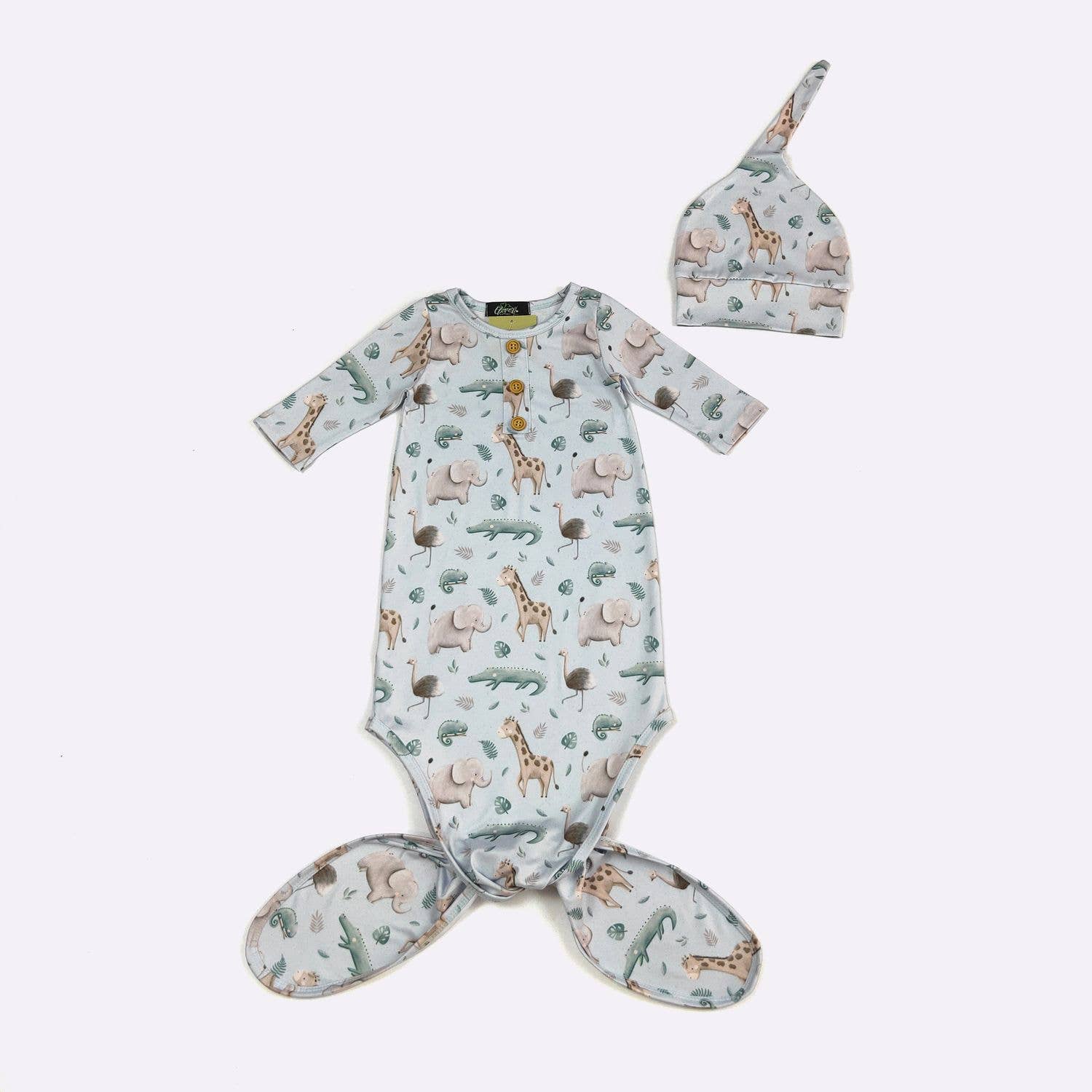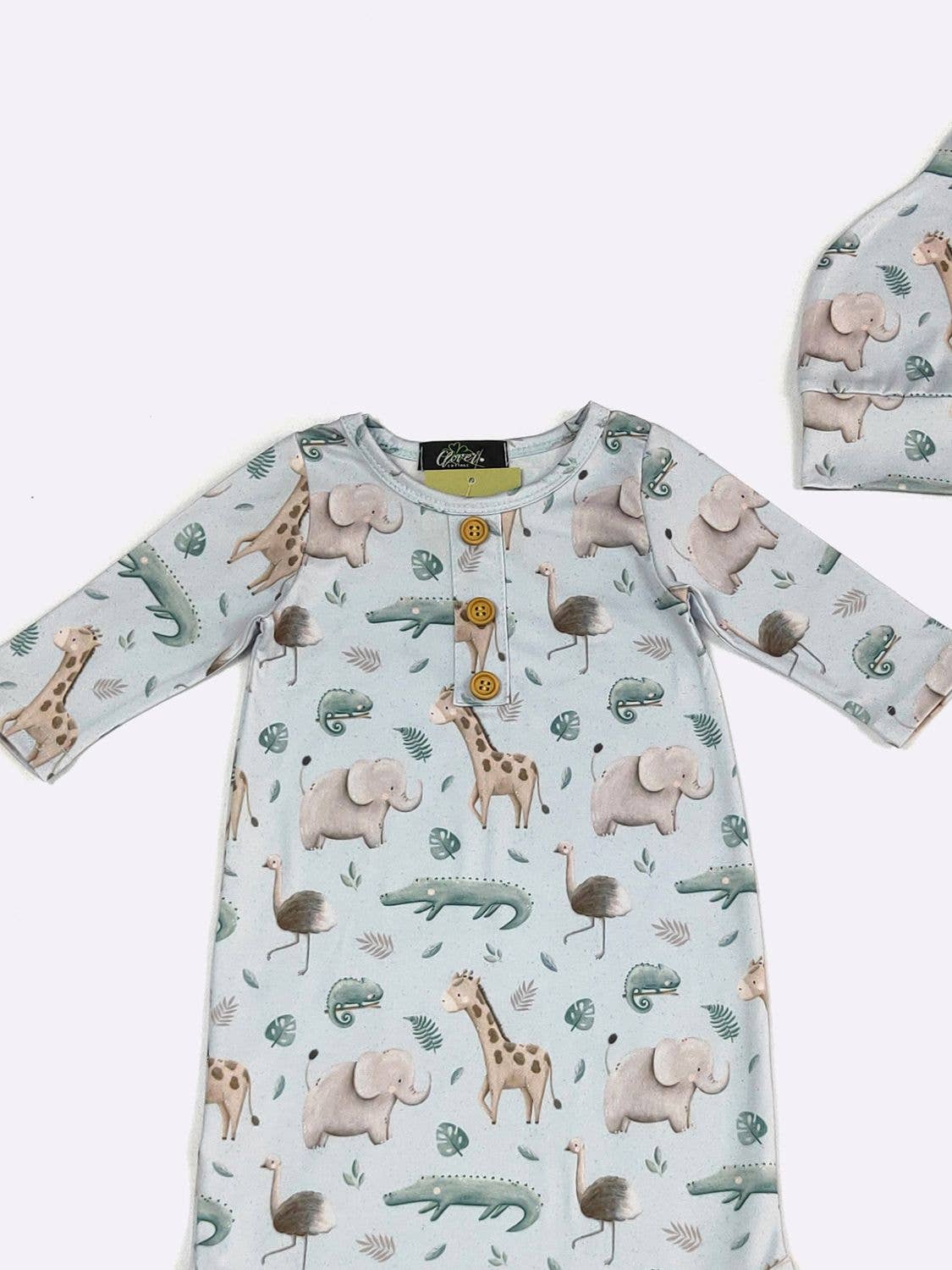 Enjoy sleep or play time when wearing this adorable baby gown and matching hat. Fits Newborn to 3 months!