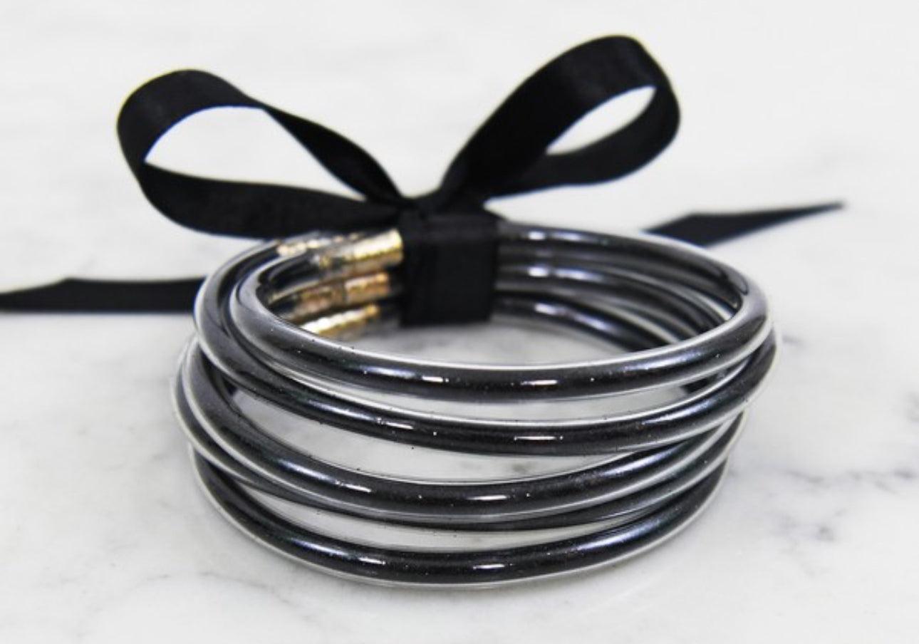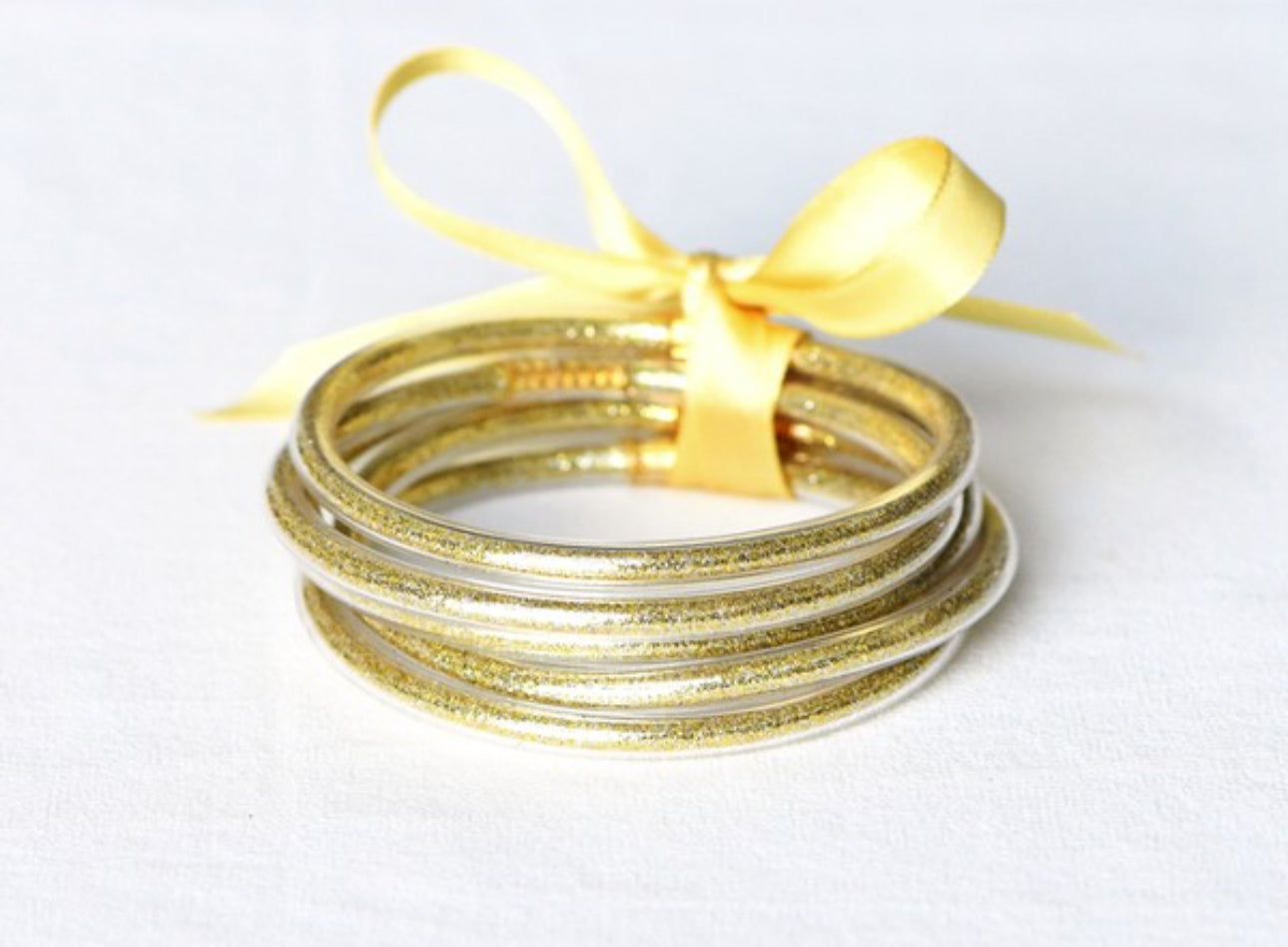 Add a pop of sparkle to any outfit with this fun stack of five Glitter Jelly Tube Bangles. Each bangle shines with glittery charm and fits most wrist sizes comfortably, making them perfect for mixing, matching, or wearing all together. Playfully versatile, these bangles are your new go-to for effortless style and a touch of shimmer every day!