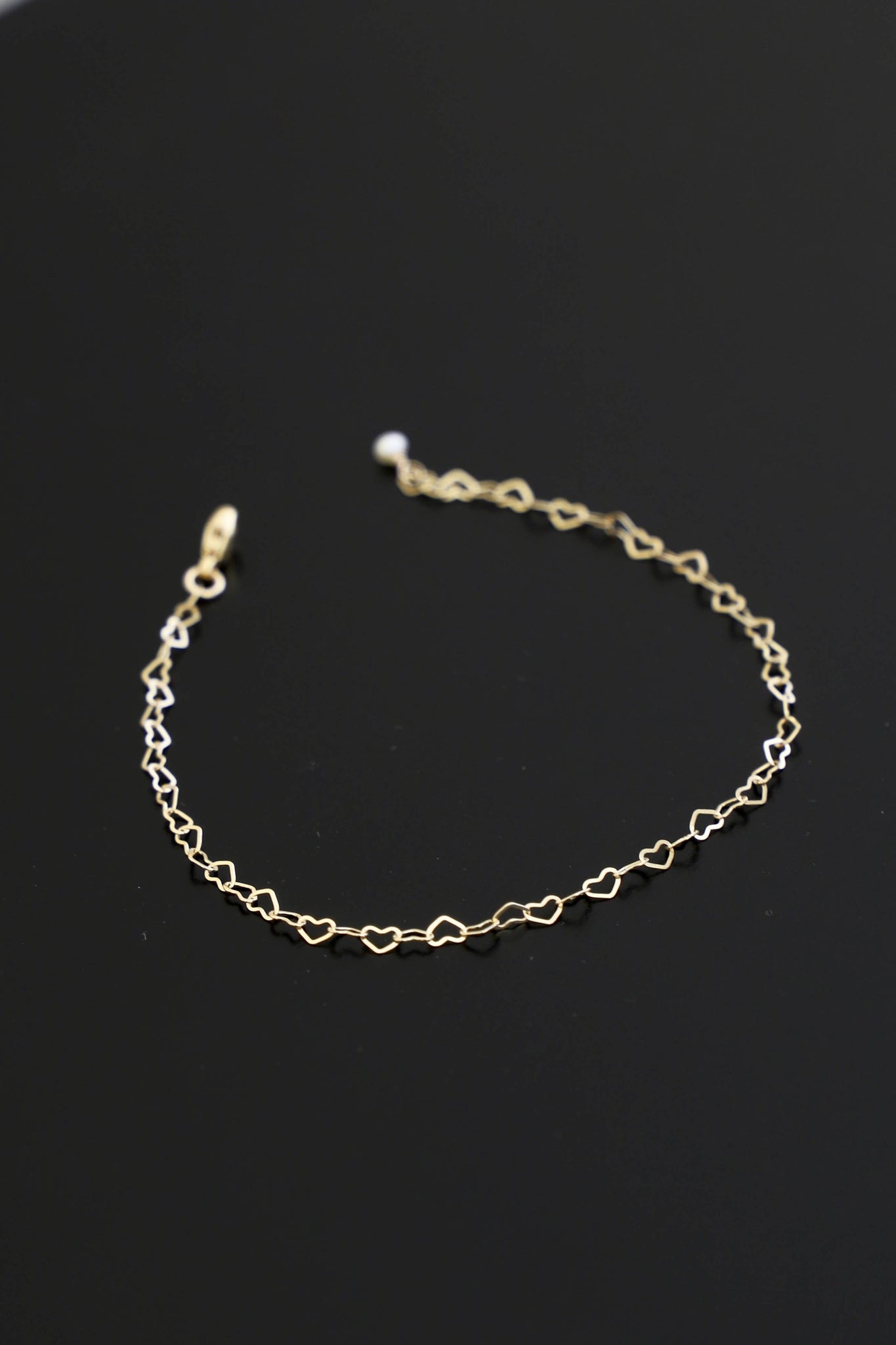 This elegant chain bracelet features interconnected hearts, symbolizing everlasting love and affection. The delicate design adds a touch of romance to any outfit, making it the perfect accessory for any occasion. Crafted with high-quality materials, this bracelet is a timeless addition to your collection.