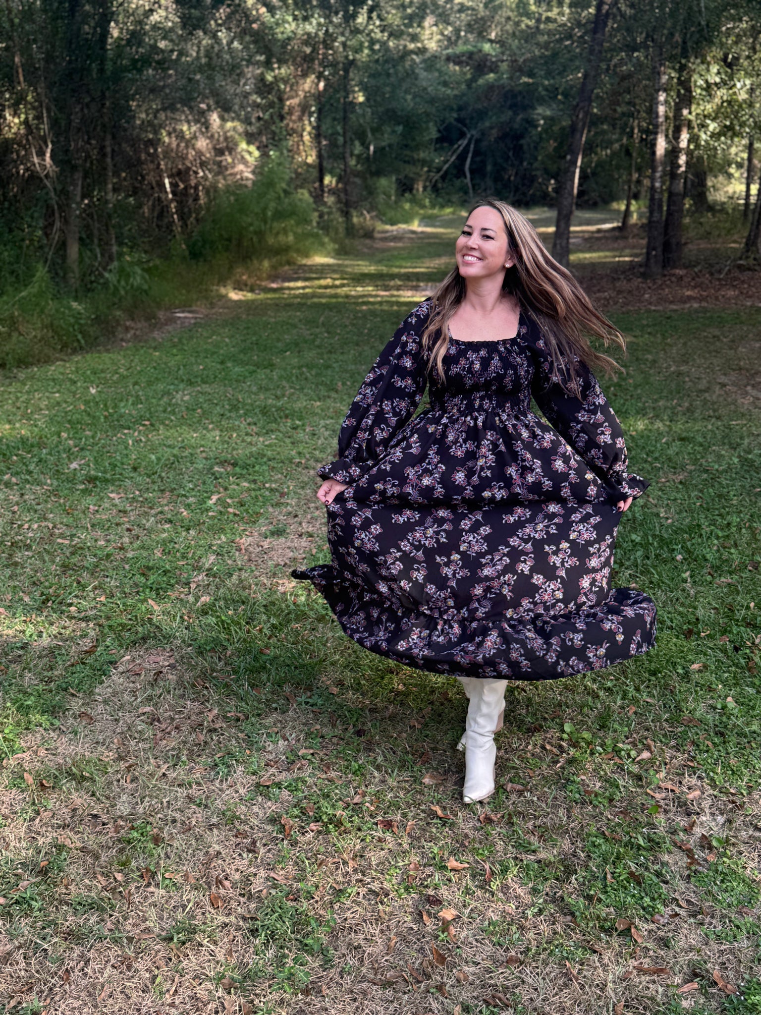 This floral maxi dress features a fit and flare design and convenient pockets. The fit and flare silhouette flatters any body type while providing comfort and movement. With the added functionality of pockets, this dress is both stylish and practical. Perfect for any occasion.