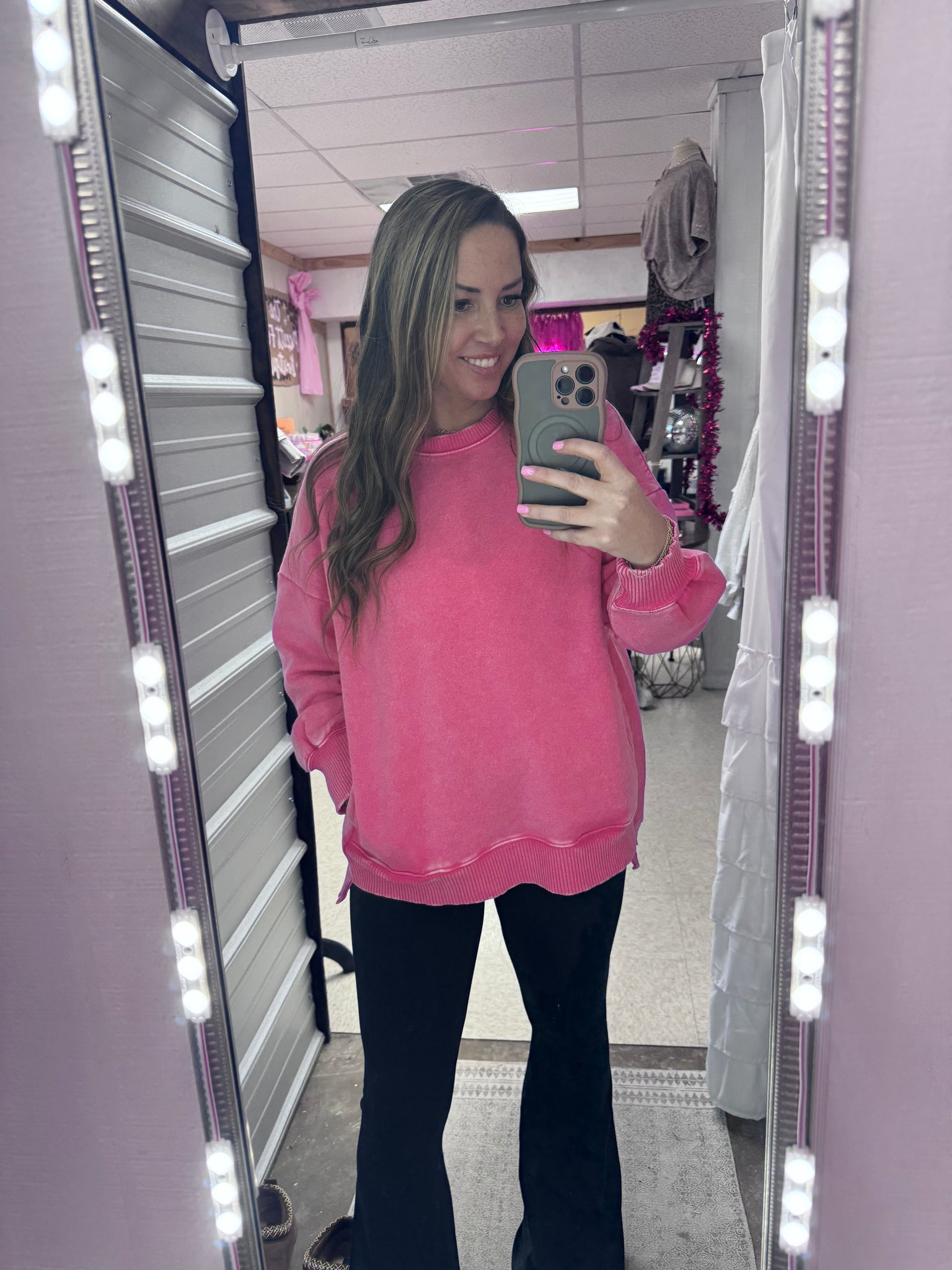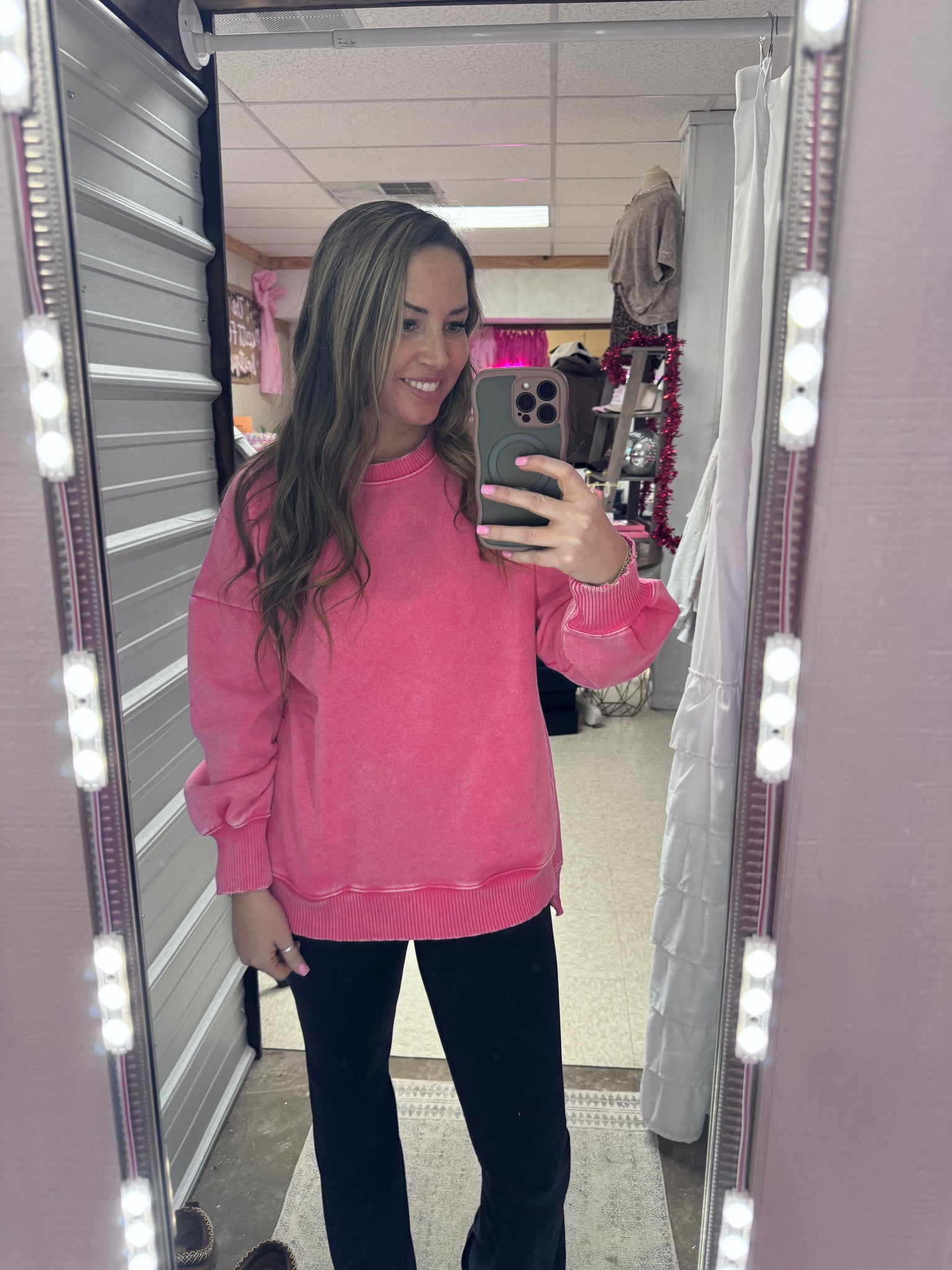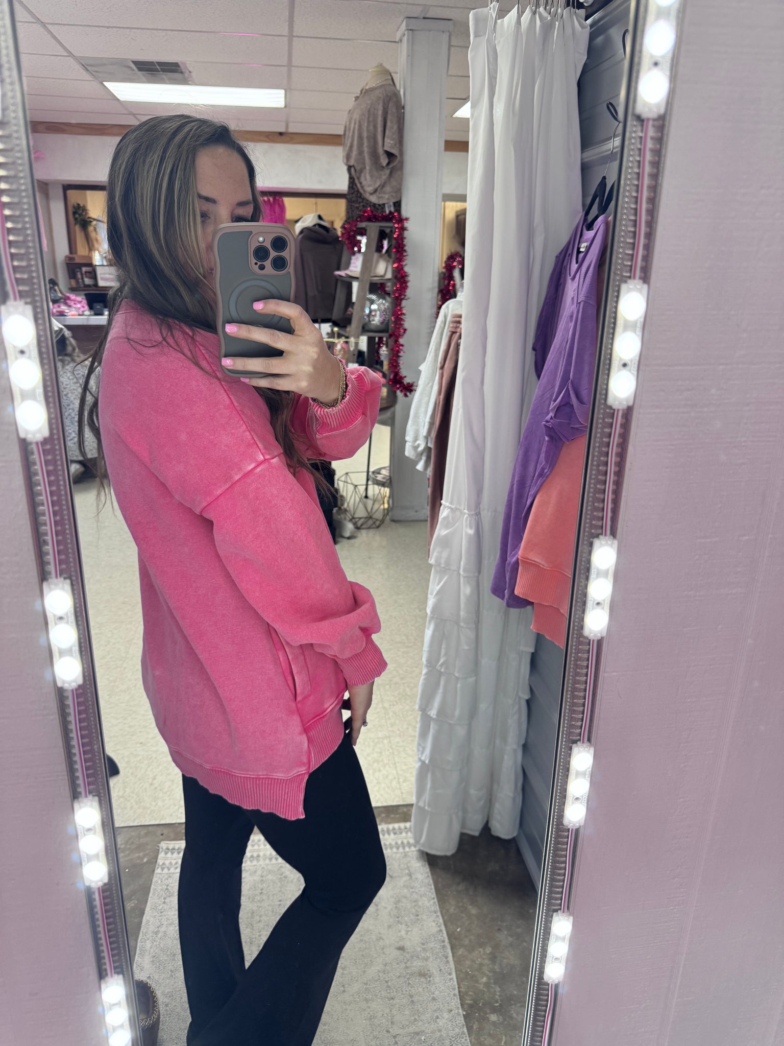 Throw on this acid wash fleece pullover and get ready to turn heads! The hi-low hem adds an effortless, trendy vibe while the cozy fleece keeps you wrapped in comfort. Bonus: those handy front pockets are perfect for stashing your essentials or keeping your hands warm. Whether you're running errands or hanging with friends, this playful piece delivers style and function in one irresistible package.