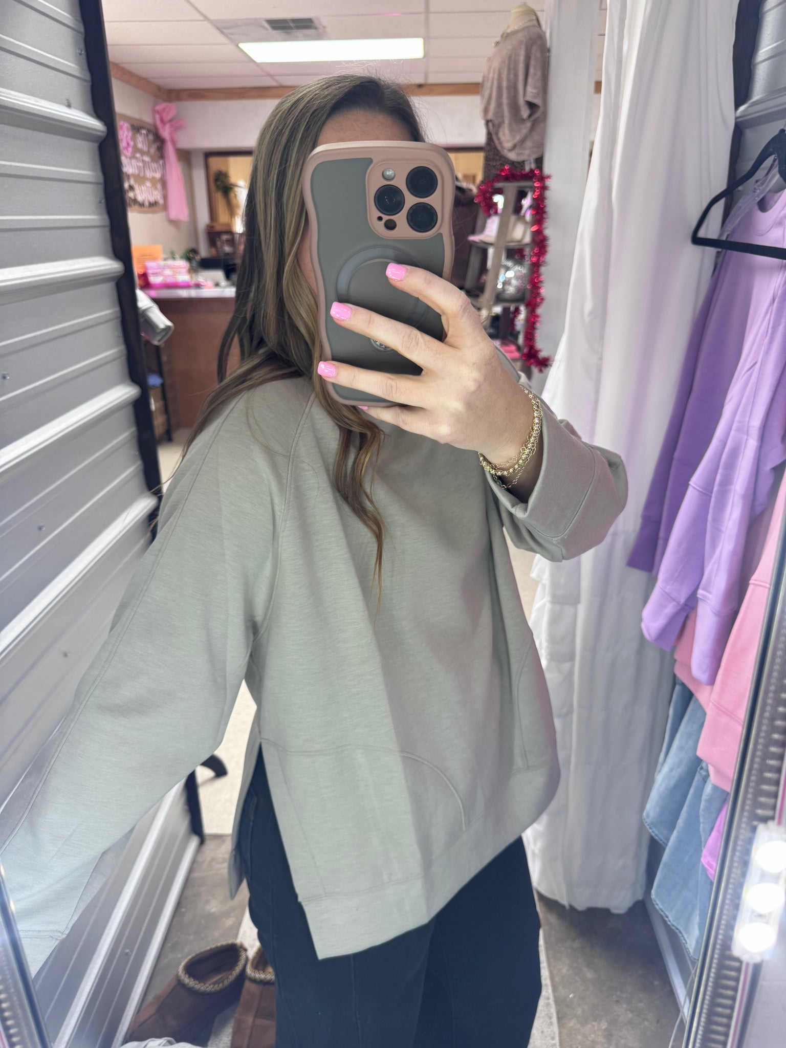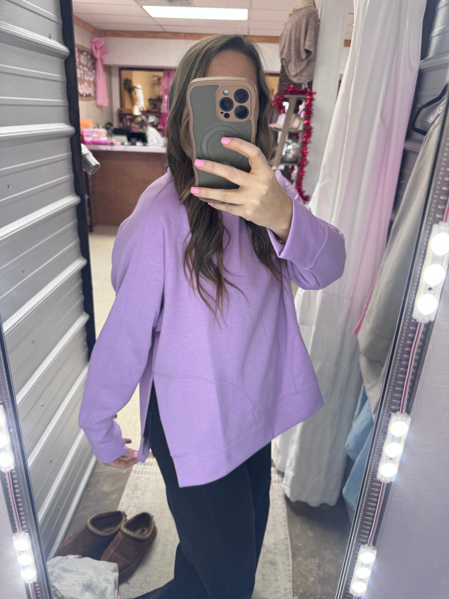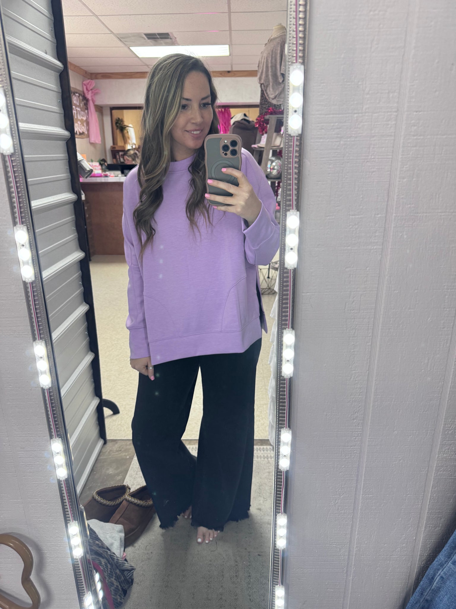 Dive into comfort with our Scuba Pullover—a playful take on everyday style! This soft, stretchy round neck pullover features chic side slits that add movement and flair to your look. Perfect for layering or wearing solo, the flexible fabric moves with you whether you're relaxing at home or out on the town. The relaxed fit and breathable material make it your new go-to piece for effortless, comfortable style.