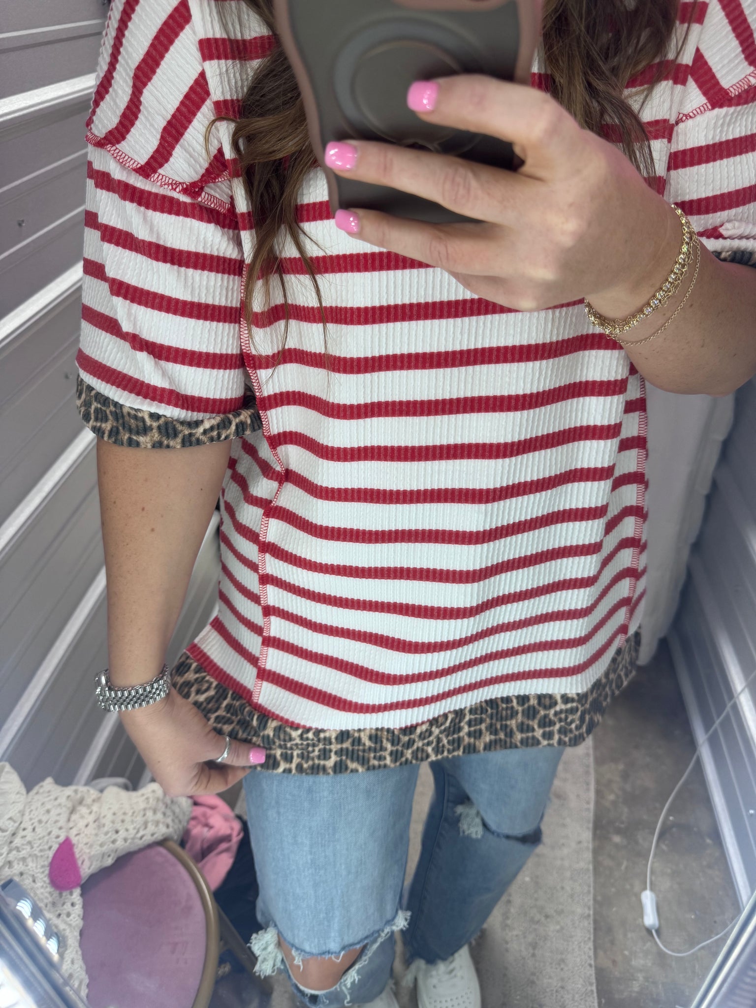Elevate your casual wardrobe with this charming short-sleeve top featuring a playful jacquard stripe pattern and eye-catching contrast detailing. The classic round neckline keeps things timeless, while the textured weave adds visual interest and dimension. Perfect for mixing and matching with your favorite bottoms, this versatile piece transitions effortlessly from weekend brunch to laid-back evenings out. Comfortable, stylish, and ready to become a go-to favorite in your closet.