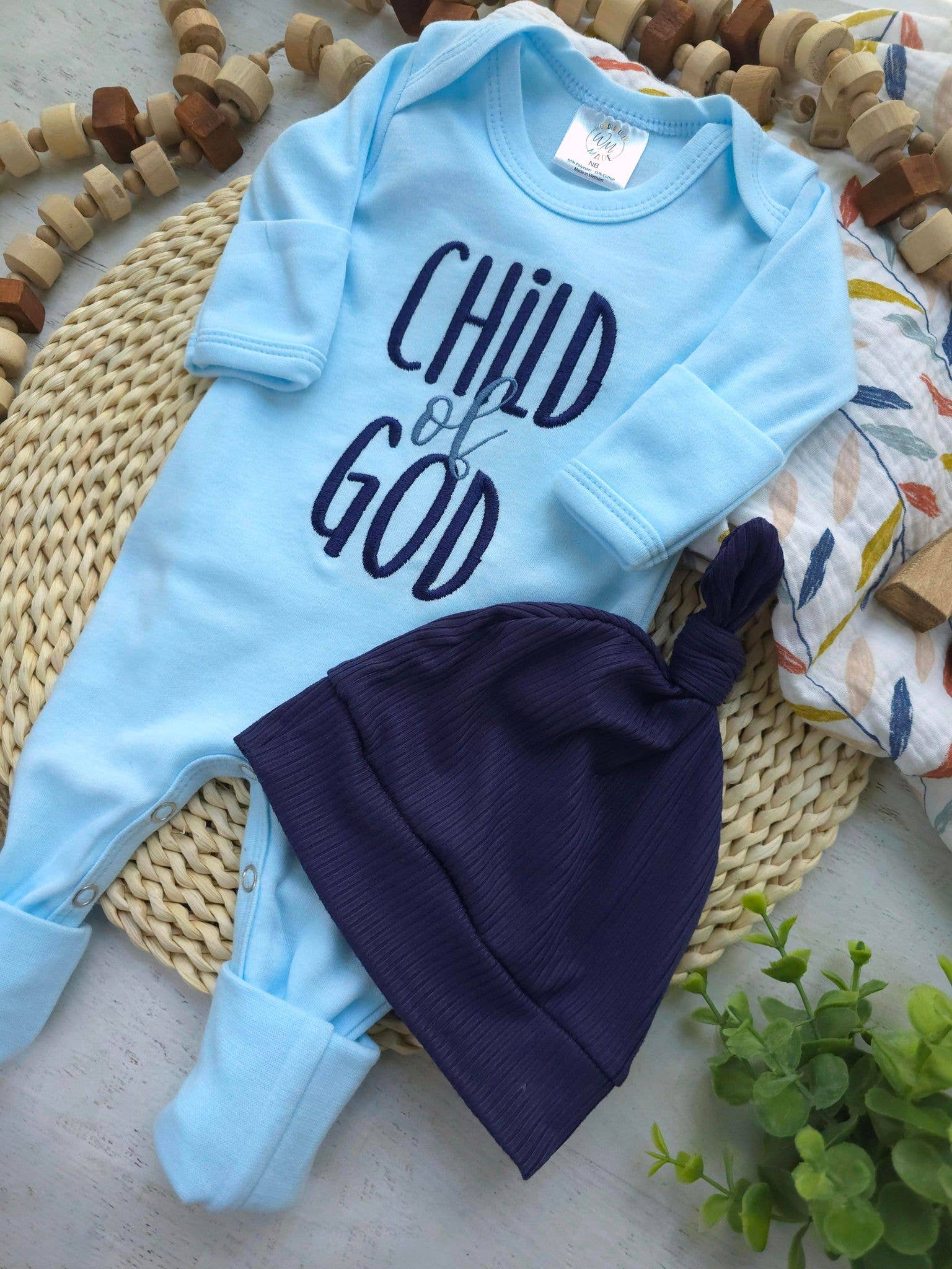 This sweet outfit shows how much of a blessing the little guy truely is! This features an ultra soft romper and you can also choose a handmade knotted hat. This outfit makes a perfect coming home outfit, newborn pictures, or baby shower gift.
