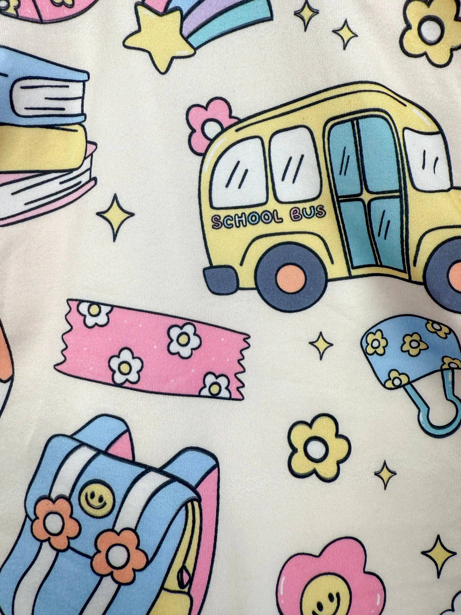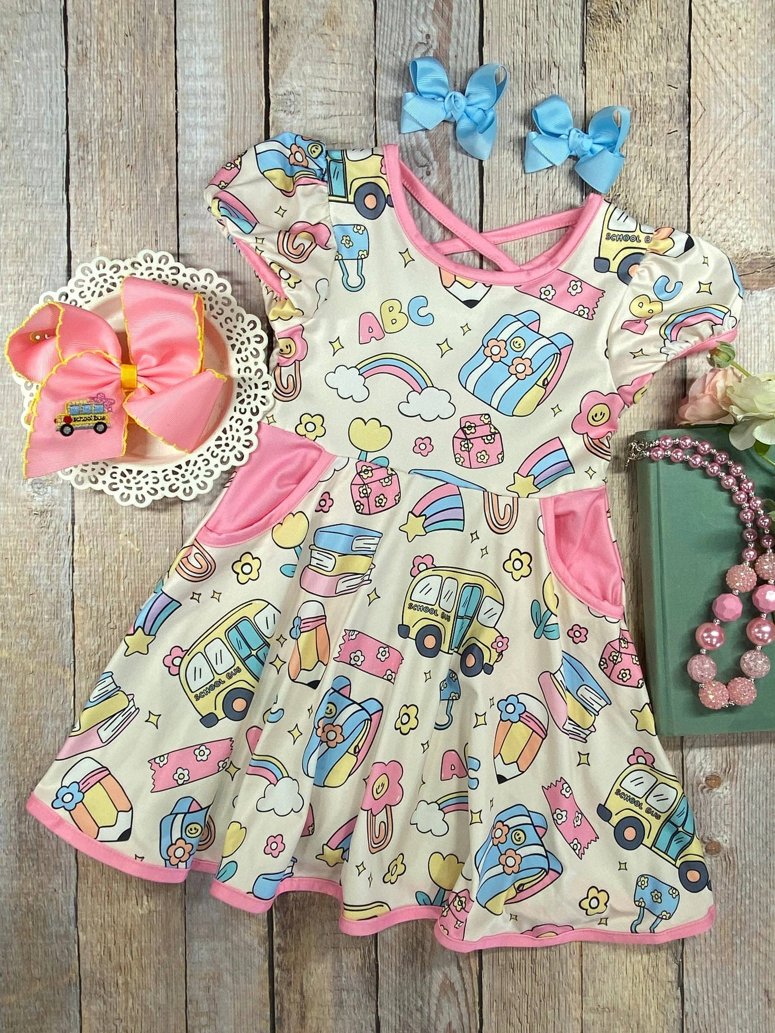 Make back-to-school extra fun with the School Buses & Supplies Twirl Dress! This playful dress features a lively print of school buses and supplies, perfect for celebrating the new school year. Its twirl-ready skirt lets your little one spin with joy, combining comfort and style for classroom days or school events. A cheerful outfit that’s sure to brighten every school morning!